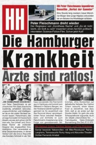 “汉堡综合症”:当科学家们在汉堡会议中心讨论延长寿命的好处时,一种危险的疾病正在蔓延并威胁着这座城市。每个被感染的人都会变得疯狂,最后死去——以一种奇怪的胚胎姿势。当局惊慌失措,并通过宣布无用的紧急状态来应对这种疾病。此外,大量发放的疫苗接种似乎确实稳定了病毒,而不是摧毁了病毒。一小群感染者设法逃离隔离,逃到巴伐利亚山区的一个小农场,等待疫情结束。